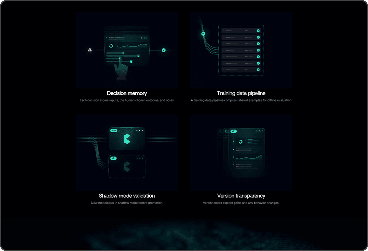 Instead of listing capabilities, each service is framed as a business impact layer.